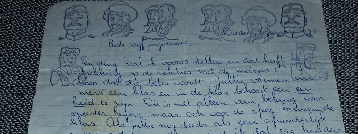 Dankzij Trees den Bieman hebben we hier nog het antwoord van de leraren op de brief die vijf meiden hadden geschreven / geklaard met betrekking tot het opsplitsen van de 5e klas.