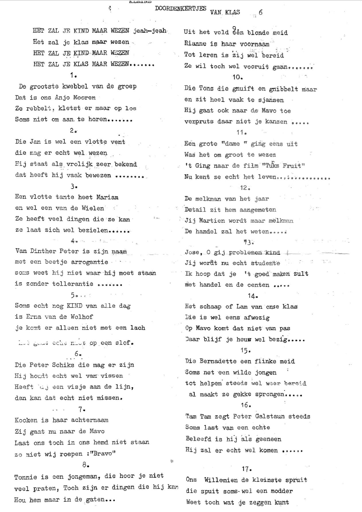 Een liedje uit onze klas 6 tijd … volgens my nog gezongen tijdens onze 2012 reunie ?