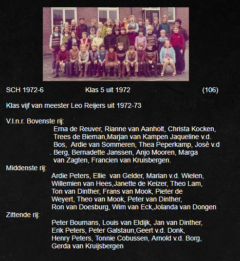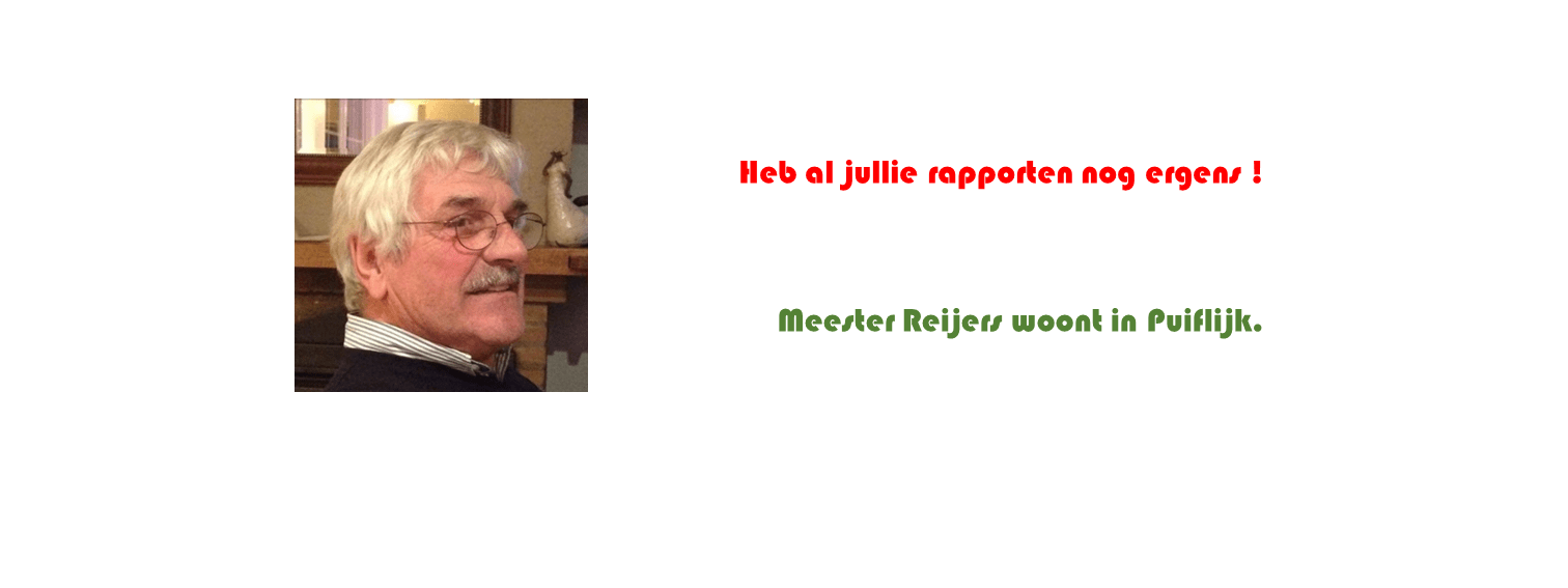 Via zijn dochter had ik het telefoonnummer van meester Reijers gekregen. Heb zeker 20 minuten aan de telefoon gehangen maar helaas hadden ze al een reisje naar de zon gepland.