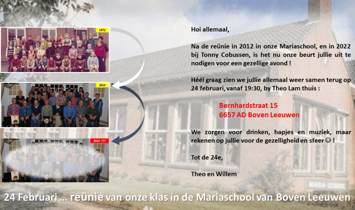 Hoi allemaal … hier is ie dan, de “officiele” uitnodiging voor onze reunie ! 28 bevestigingen tot nu toe !